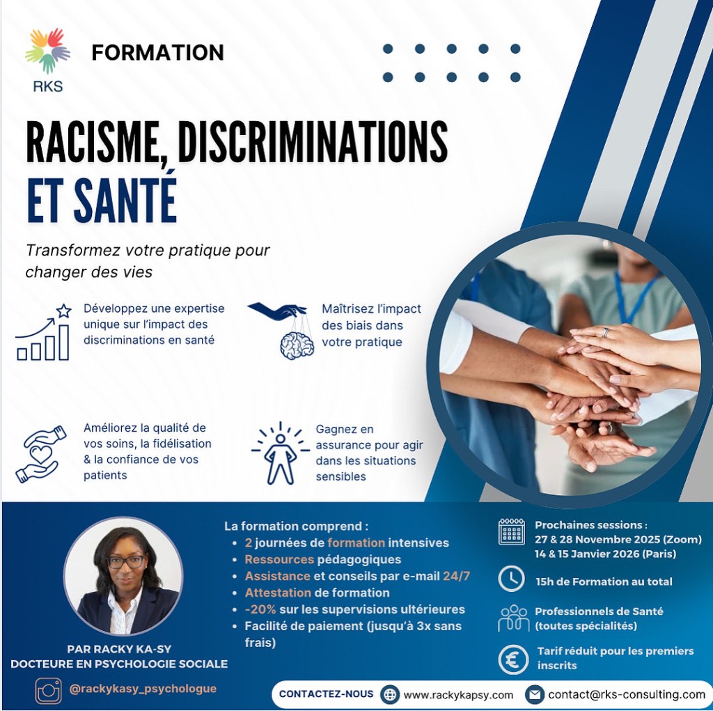 Je vous propose deux nouvelles dates pour la formation « Racisme, Discriminations et Santé » :